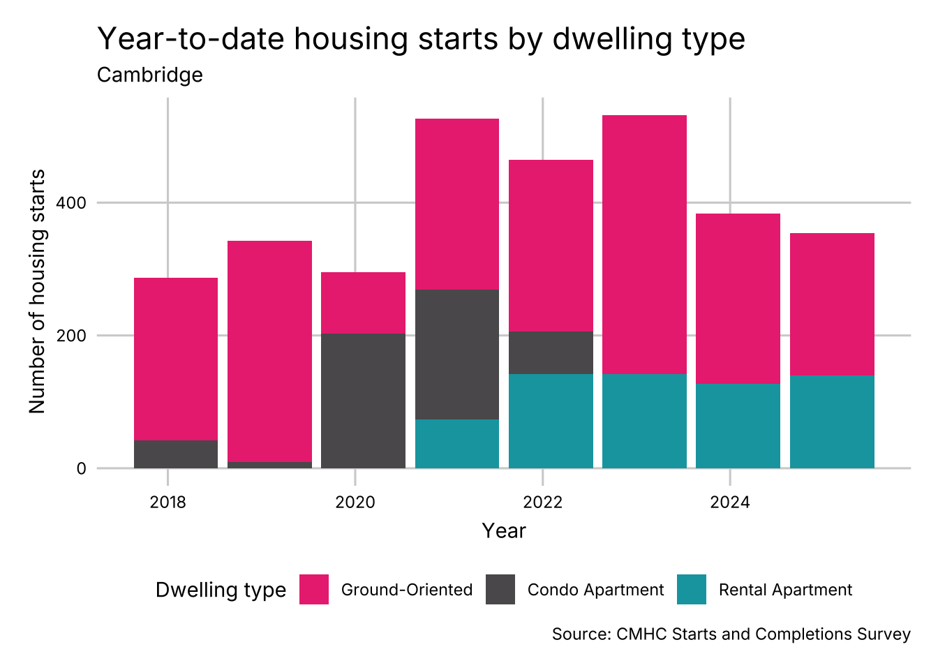| Starts: Ground-Oriented | 289 | 212 | -77 | -27% | 62 | C |